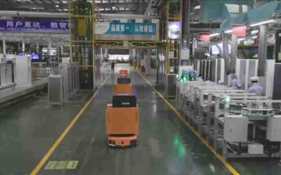 为车载冰箱物流配送打造的智能解决方案,,包含产中物流通过潜伏举升AMR搬运至线边,,产后成品物流智能仓储,,,流程包含产中物流智能齐套入库,,,,线边安灯叫料AMR智能配送至线边,,成品入库、、、出库,,通过无人堆高车机器人,,,智能仓储管理替代人工作业管理,,,实现更高存储、、、更高效率、、更具柔性化的解决方案。。。
